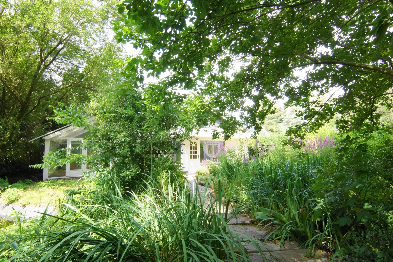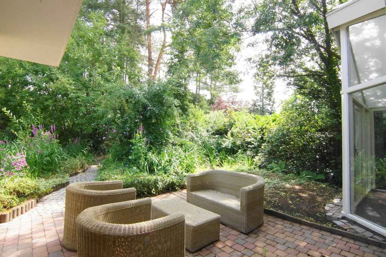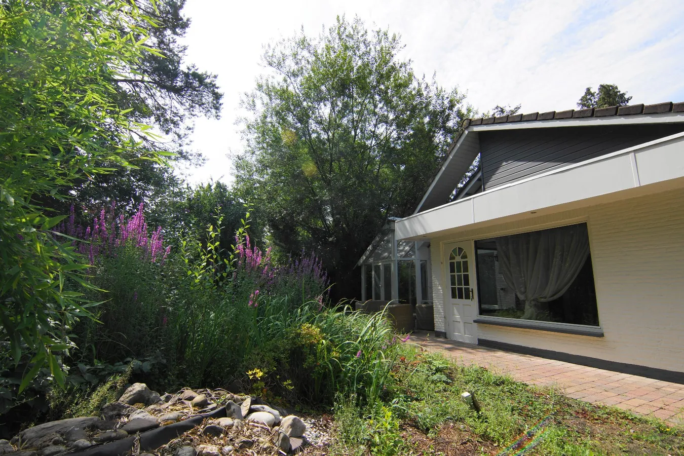 De tuin is voorzien van diverse terrassen, beplanting, vijver en een gazon.