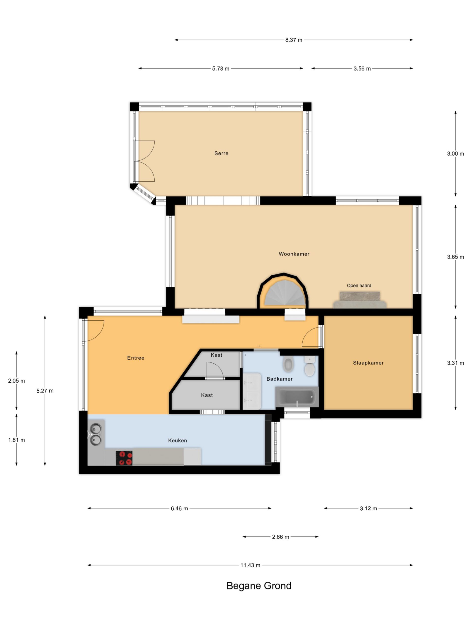 De hal/ entree is aan de zijkant van de woning. U heeft dan toegang tot de woonkamer met keuken en trapopgang naar de eerste verdieping. In de hal/ entree bevindt zich ook de meterkast met 12 groepen en 1 aardlekschakelaar.