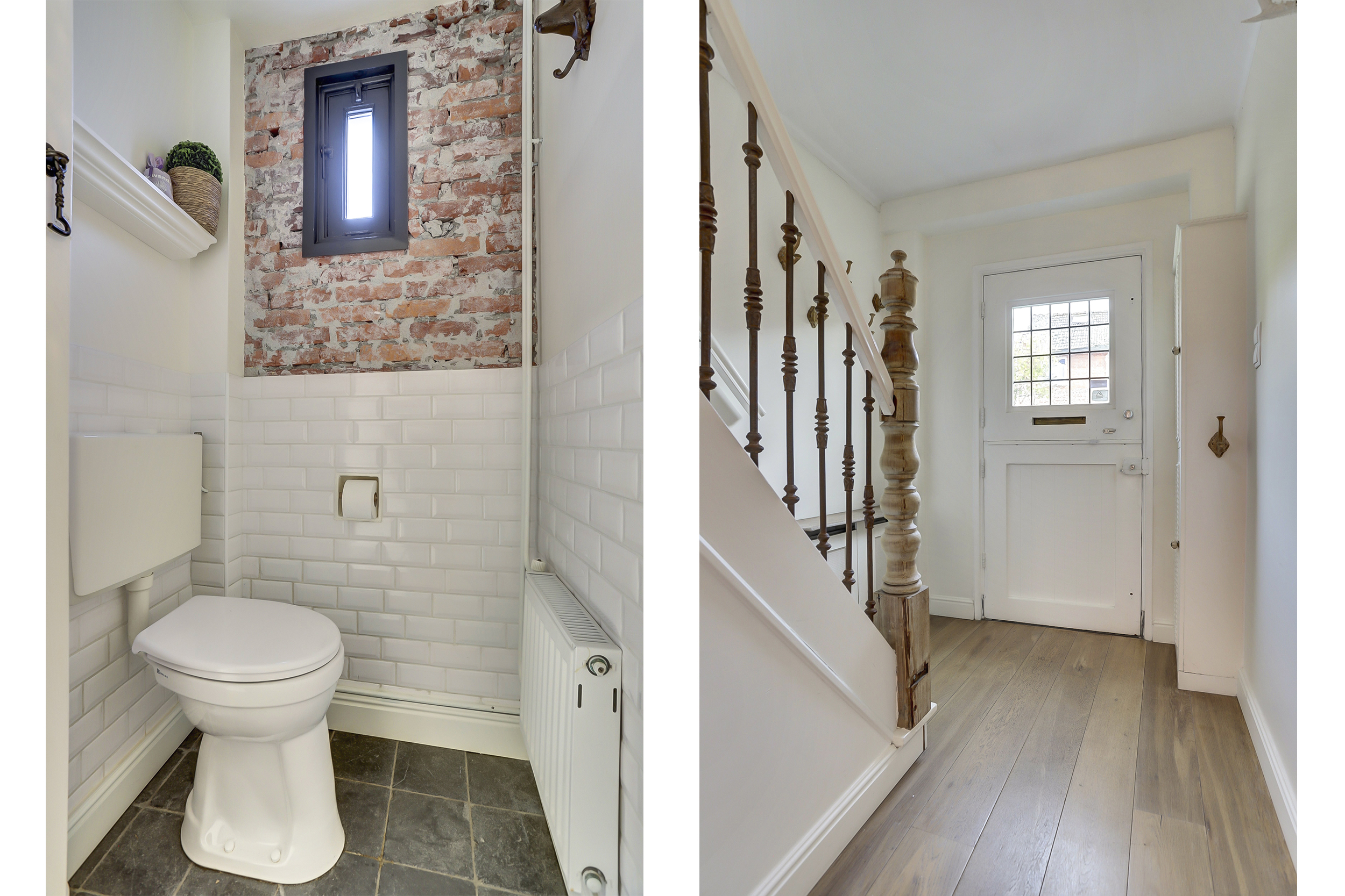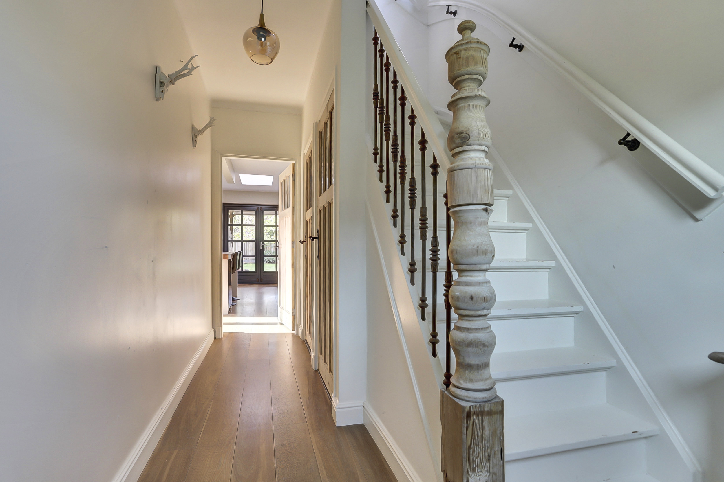 De entree biedt toegang tot de hal met meterkast, toilet, trapopgang en praktische kelderkast.