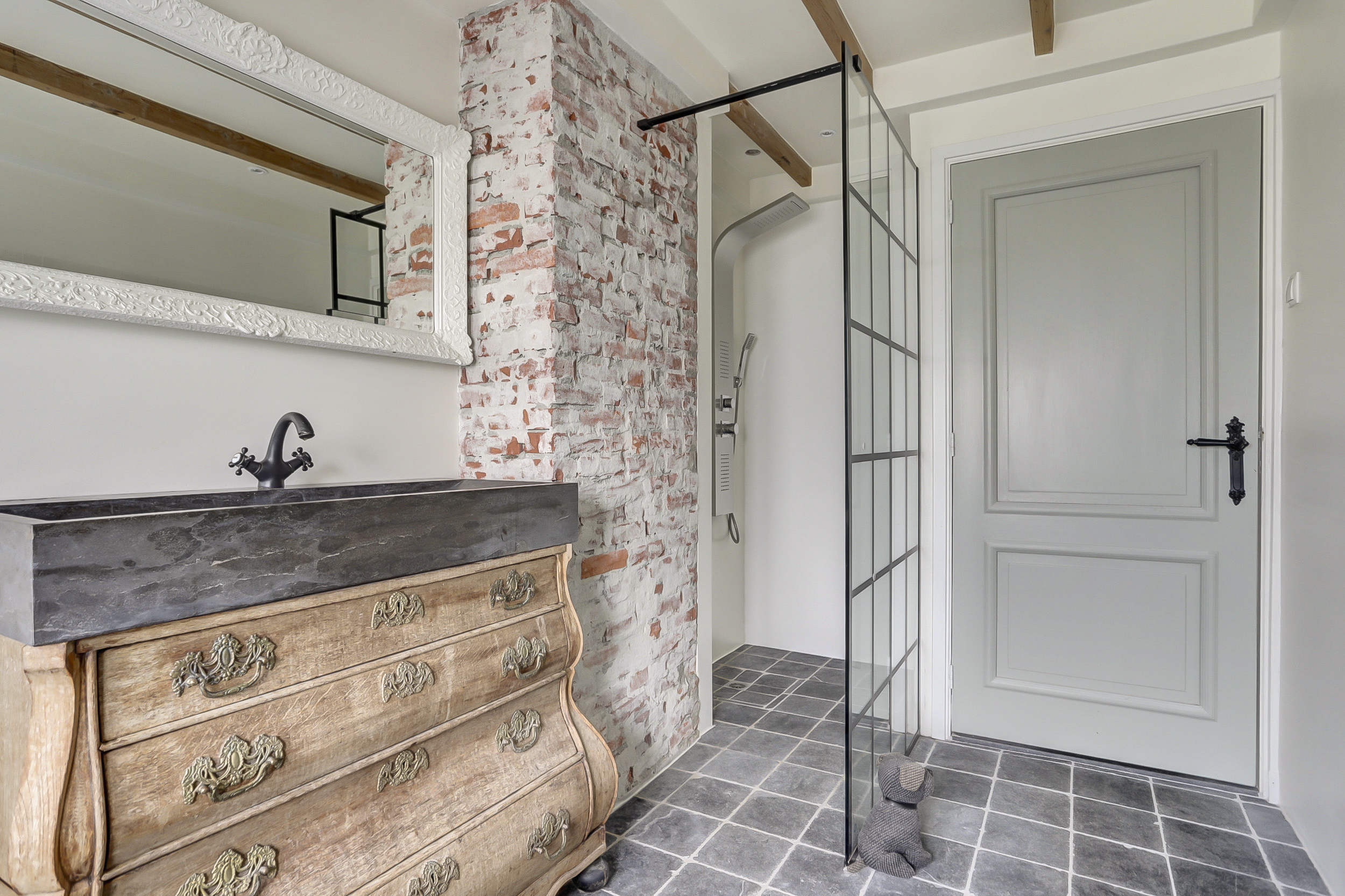Hier komen karakter en comfort op een mooie manier samen: een lichte woonkamer met houtkachel, een stoere woonkeuken en een stijlvolle badkamer met bad op pootjes – allemaal met zorg en smaak afgewerkt.