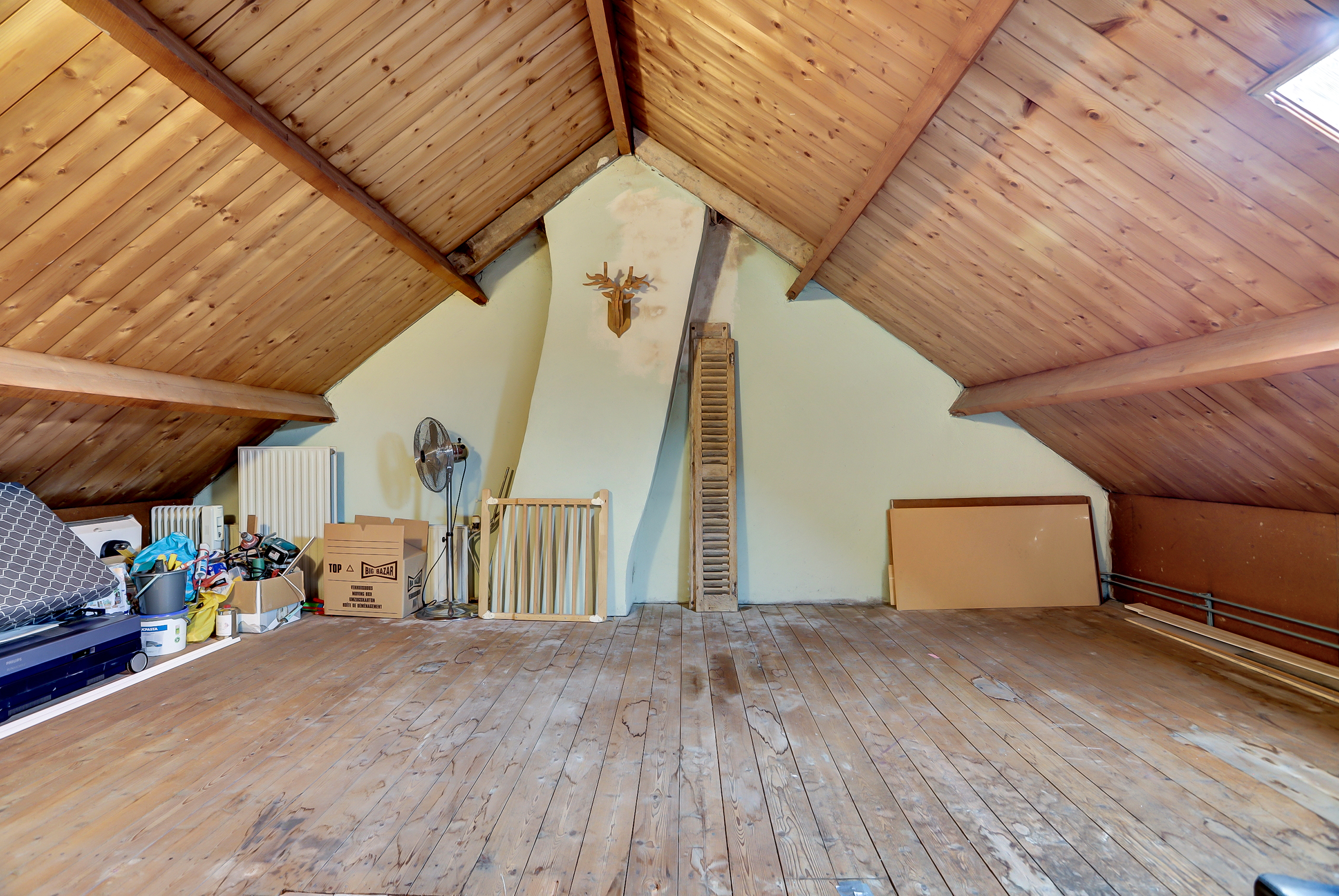 Via een vaste trap bereik je de ruime zolderverdieping. Hier is de cv-installatie geplaatst en er is volop ruimte om een derde slaapkamer of werkkamer te realiseren, de afwerking kan nog naar eigen wens worden uitgevoerd – een mooie kans om de woning verder naar eigen smaak te maken.