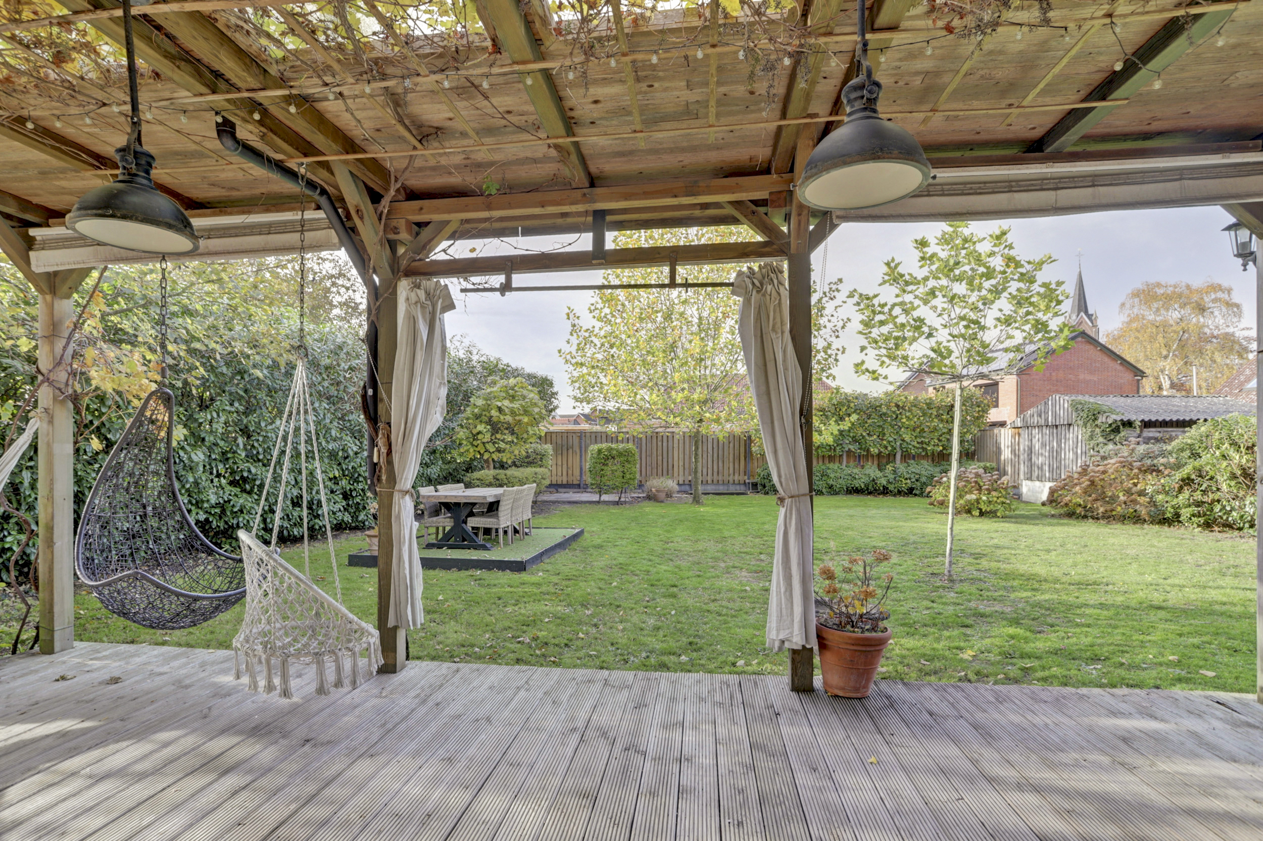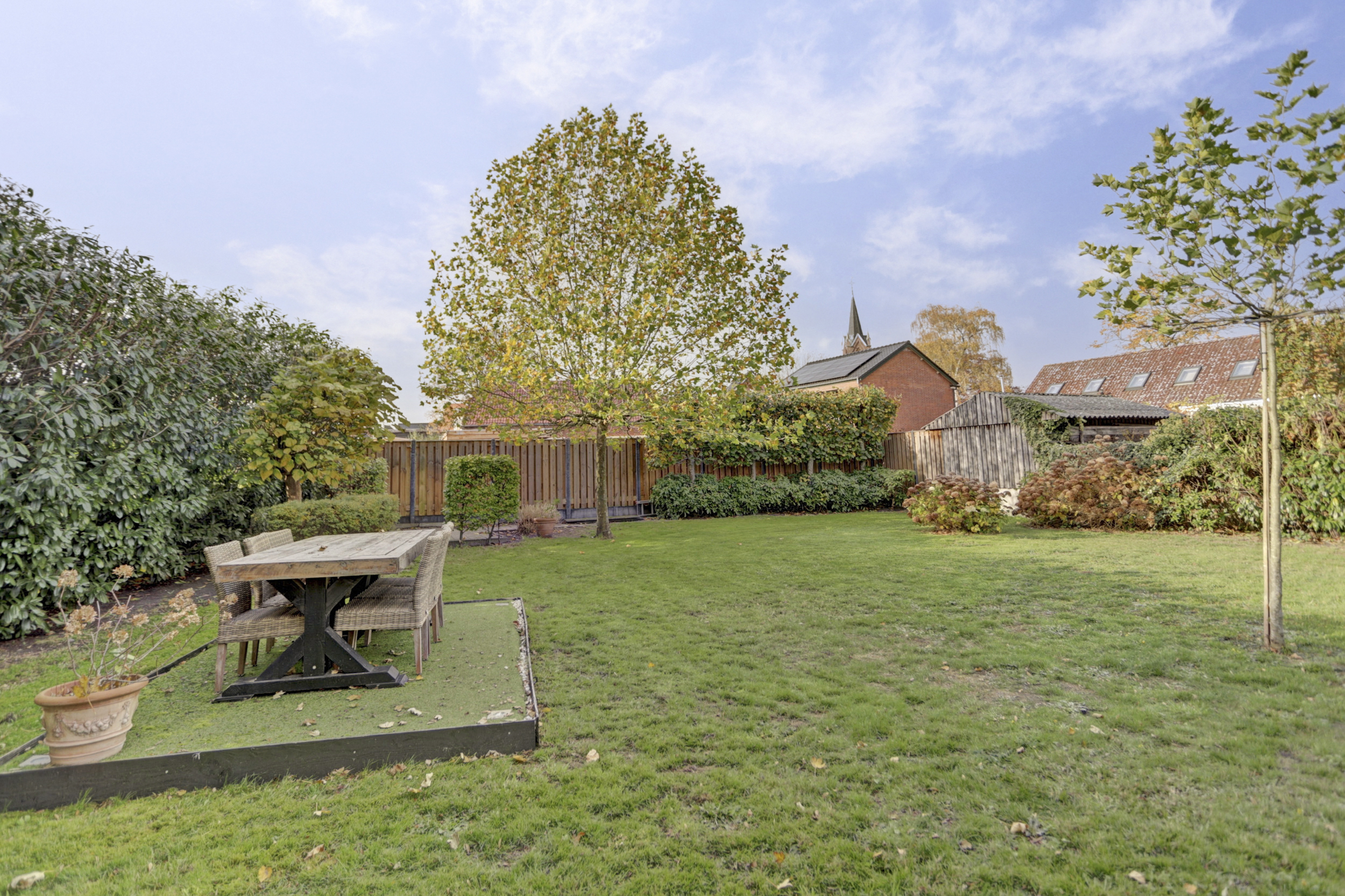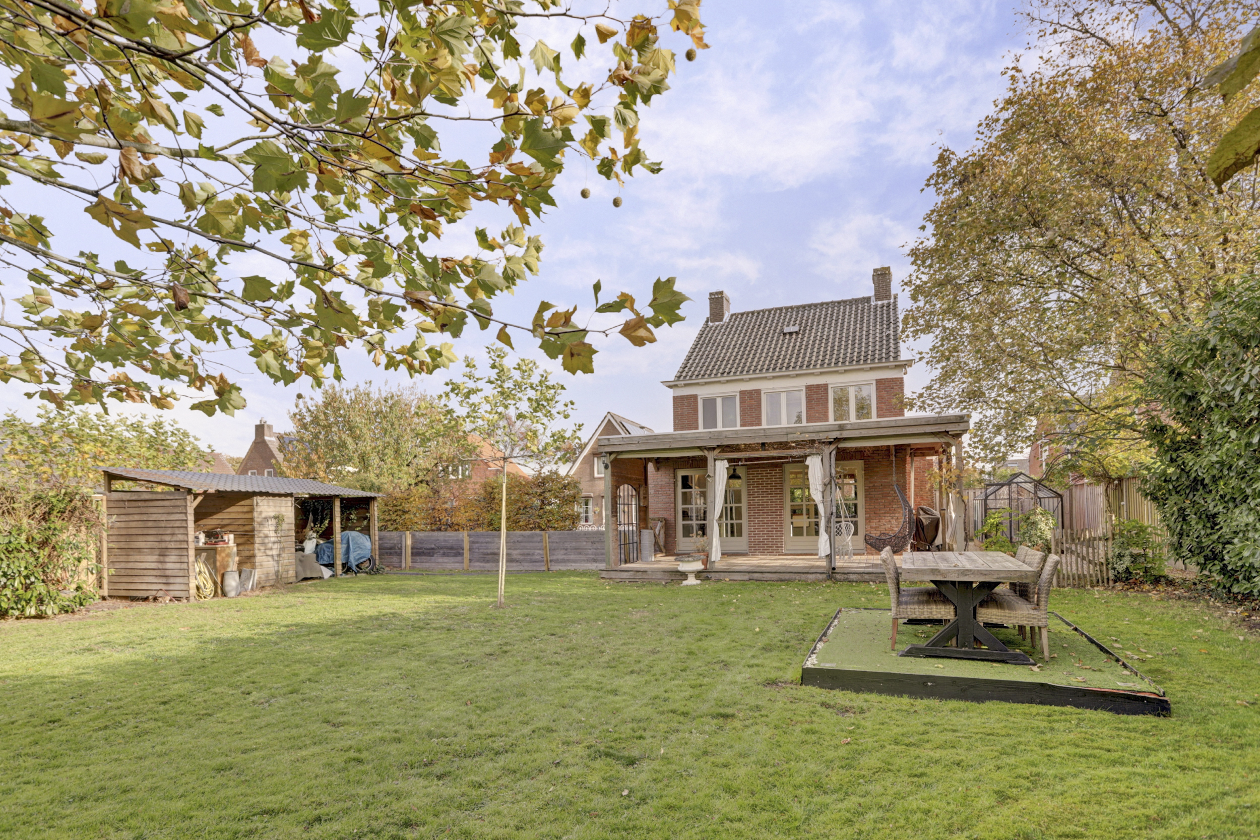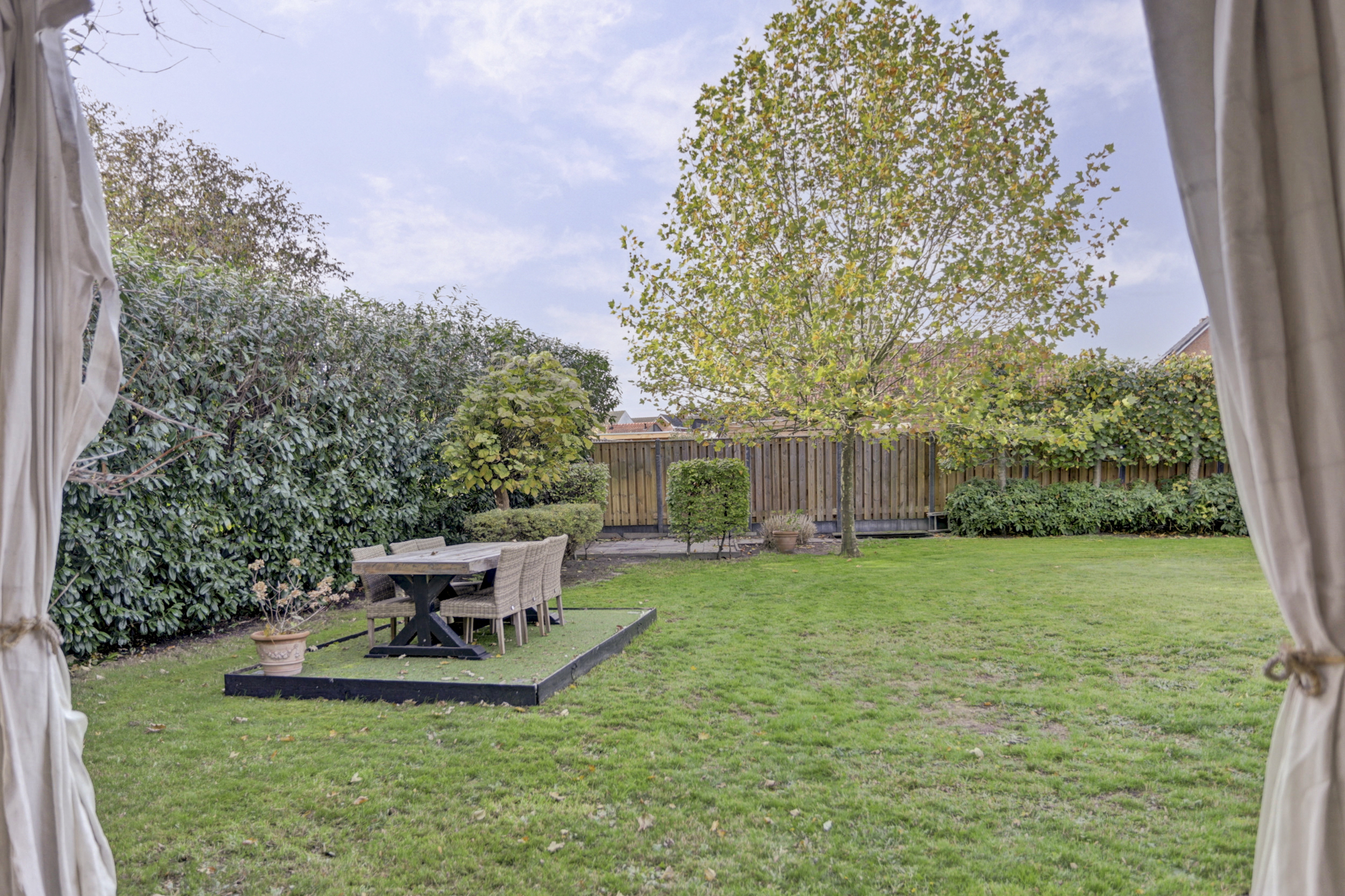 De zonnige achtertuin ligt op het zuidwesten en biedt veel privacy. De achtertuin is volledig omheind en ingericht met gazon volwassen beplanting en terras. In de tuin staat een praktische houtschuur, ideaal voor opslag of als werkplaats.