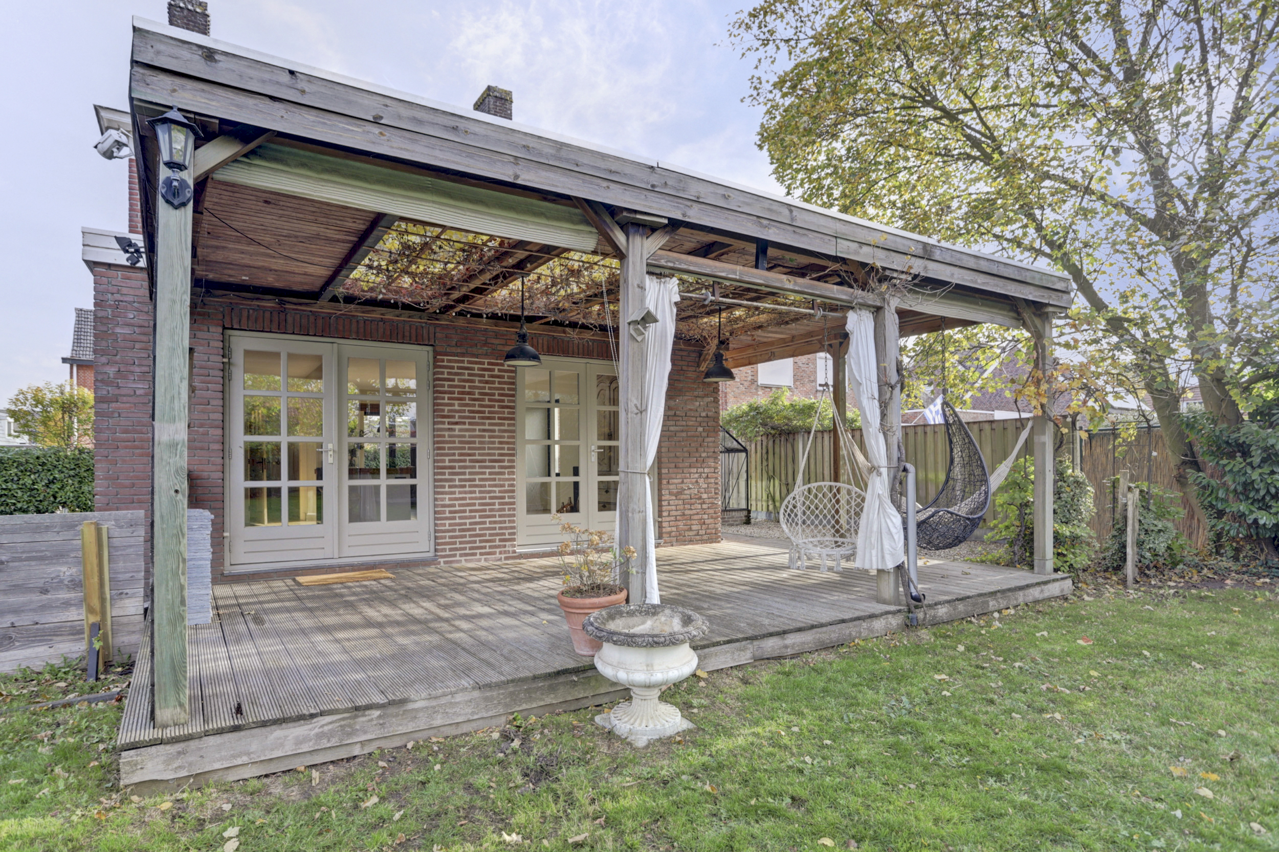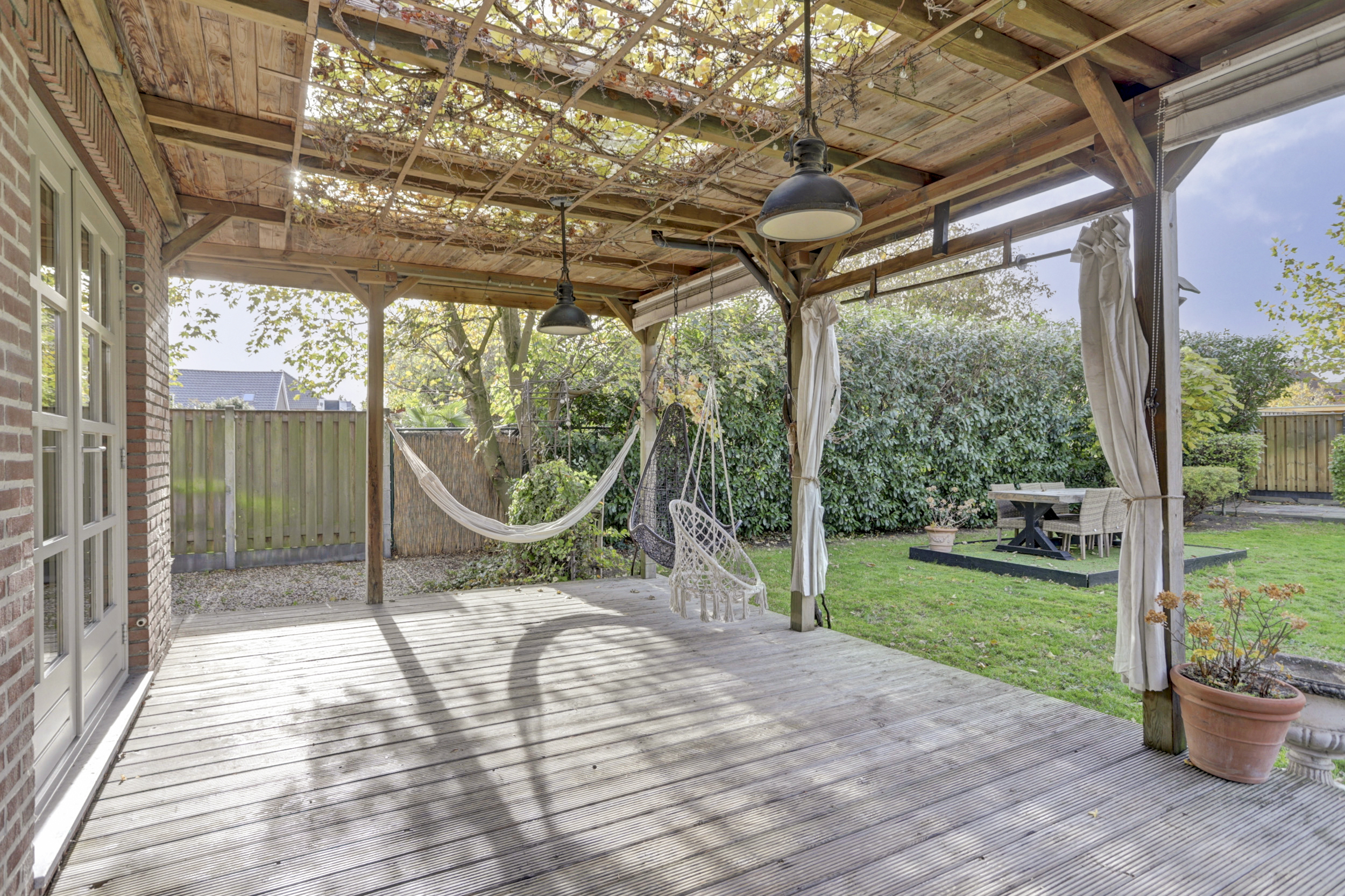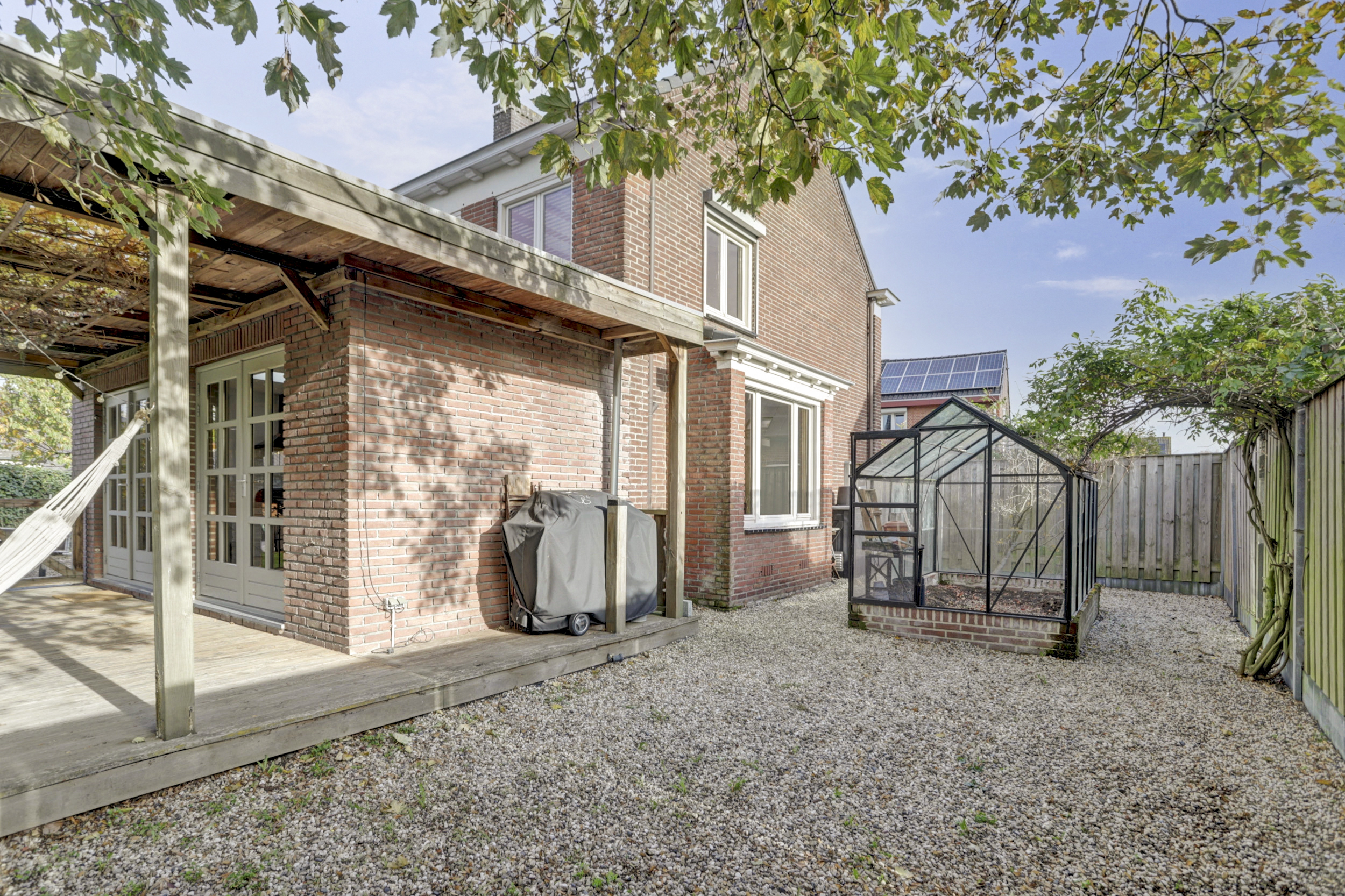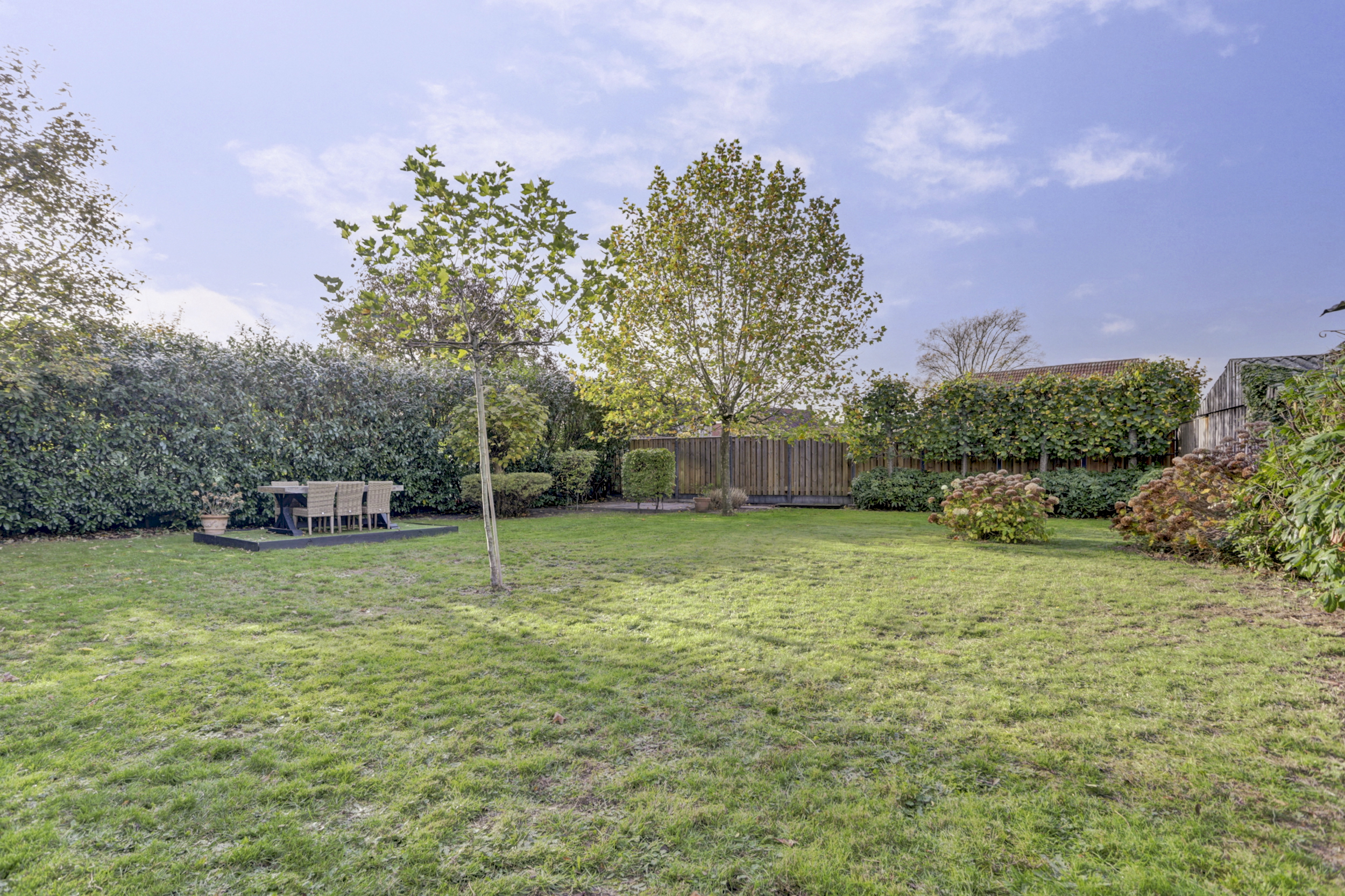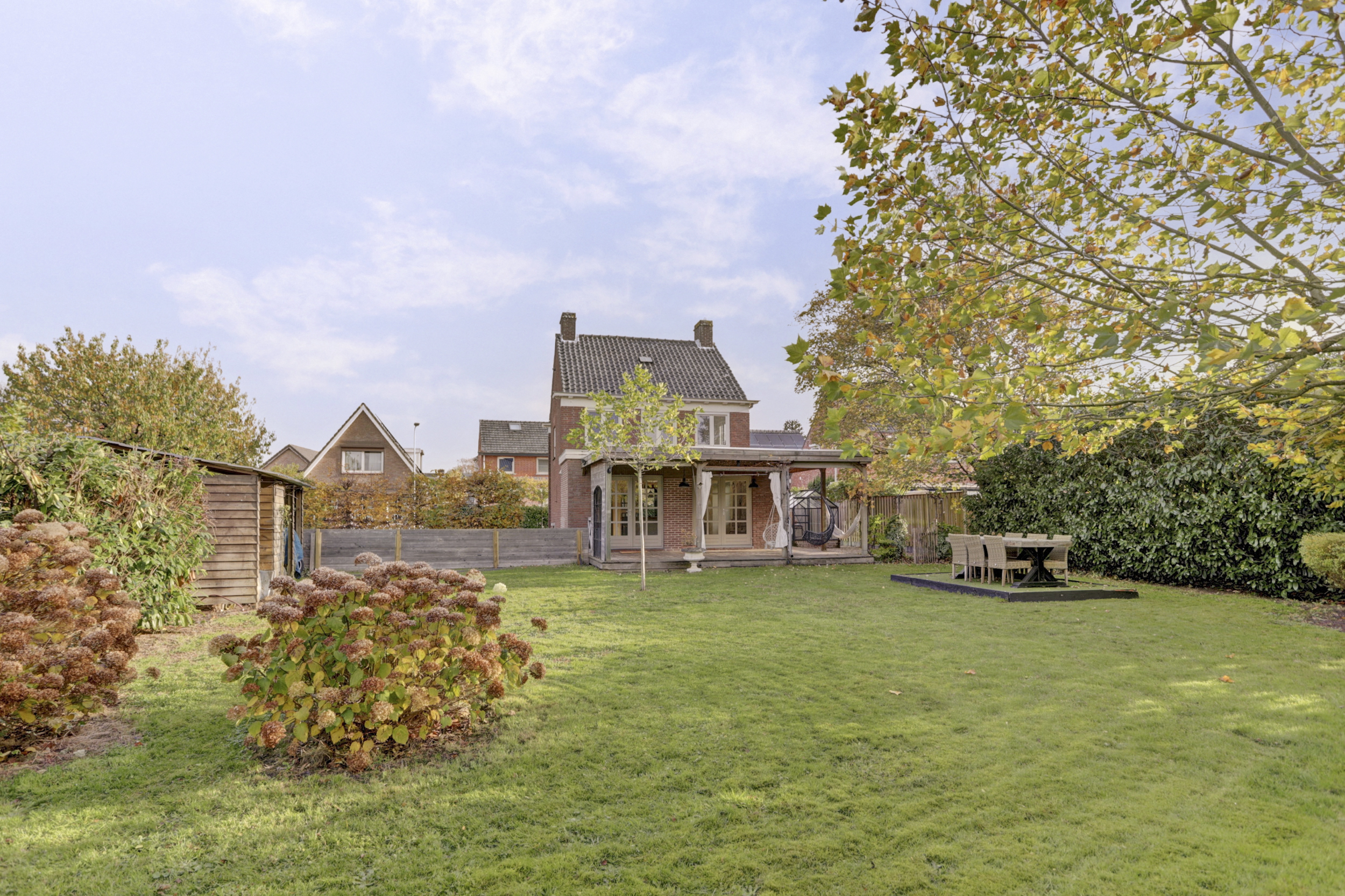 De zonnige achtertuin ligt op het zuidwesten en biedt veel privacy. De achtertuin is volledig omheind en ingericht met gazon volwassen beplanting en terras. In de tuin staat een praktische houtschuur, ideaal voor opslag of als werkplaats.