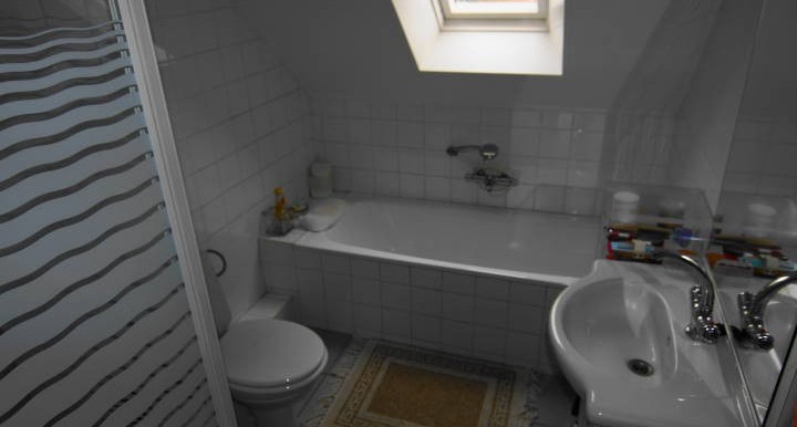 De overloop geeft toegang tot 3 ruime slaapkamers en de badkamer. De gehele 1e verdieping. De moderne badkamer is voorzien van een ligbad, aparte douchecabine, grote wastafel met en een 2e toilet. De badkamer is geheel betegeld.