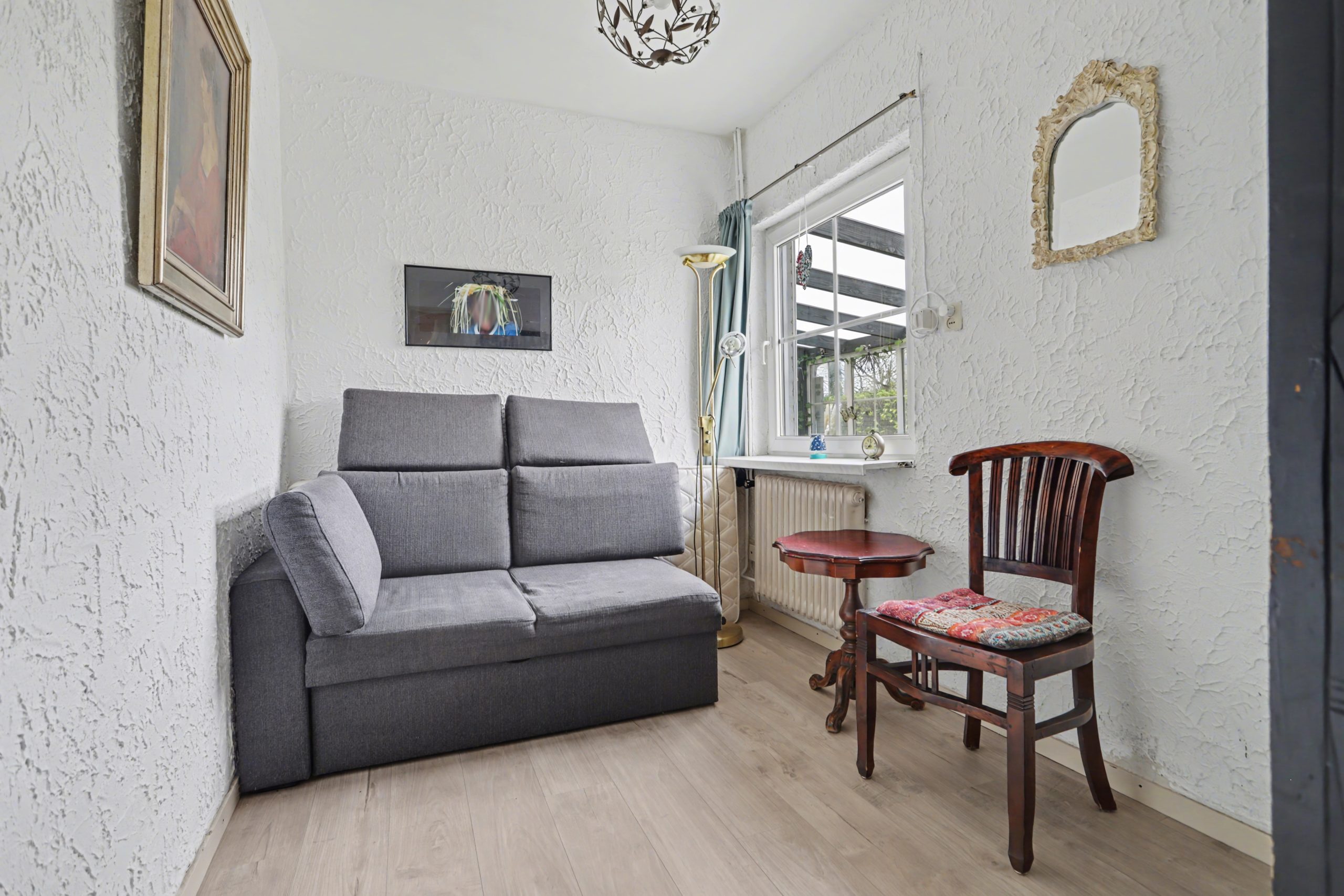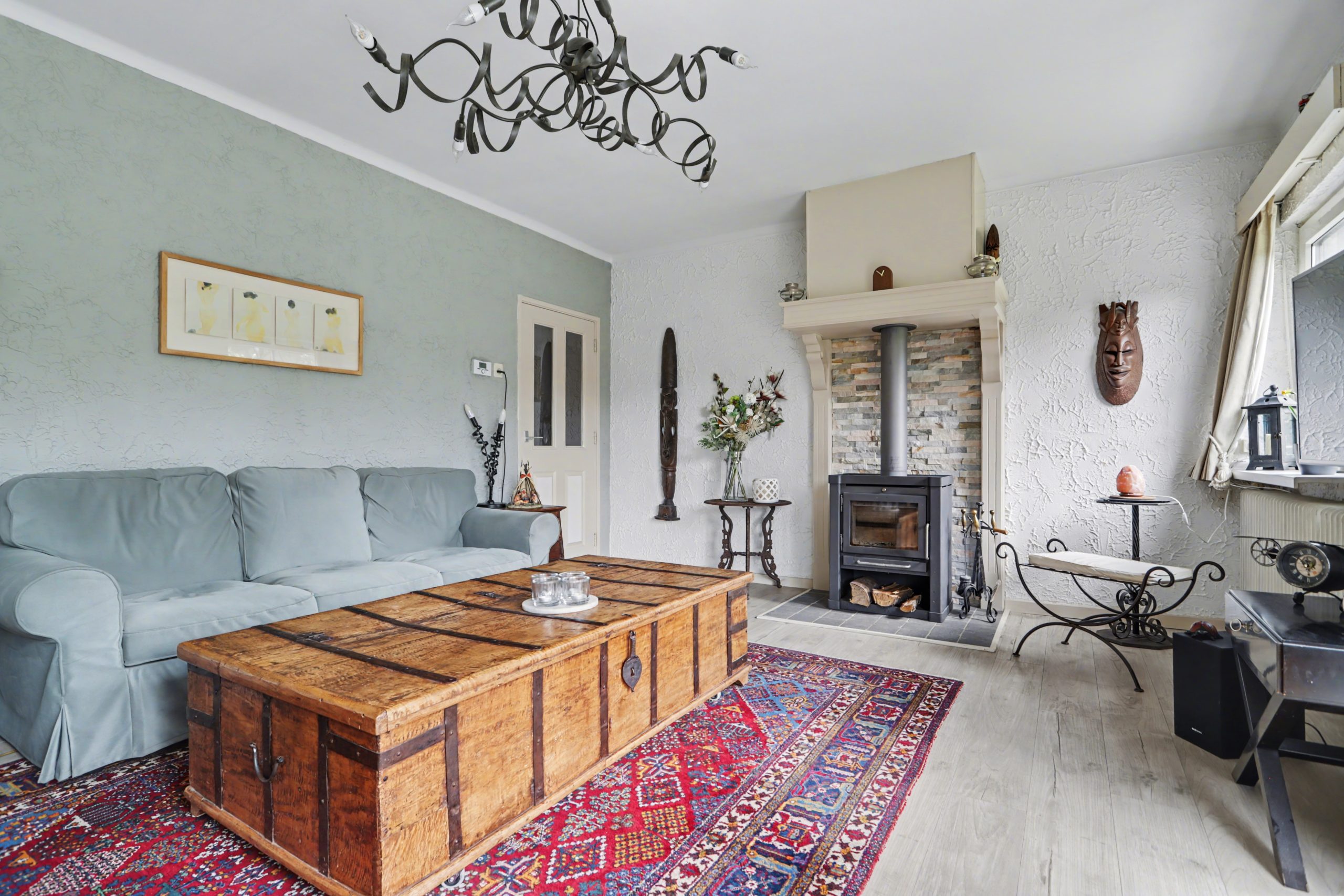 De lichte en sfeervolle living is voorzien van strak gestucte wanden en een gezellige houtkachel. Dankzij de openslaande deuren loopt u zo de tuin in, waardoor binnen en buiten mooi in elkaar overlopen. Vanuit de woonkamer is er toegang tot de keuken en de hal met de slaapkamers, badkamer en het toilet.