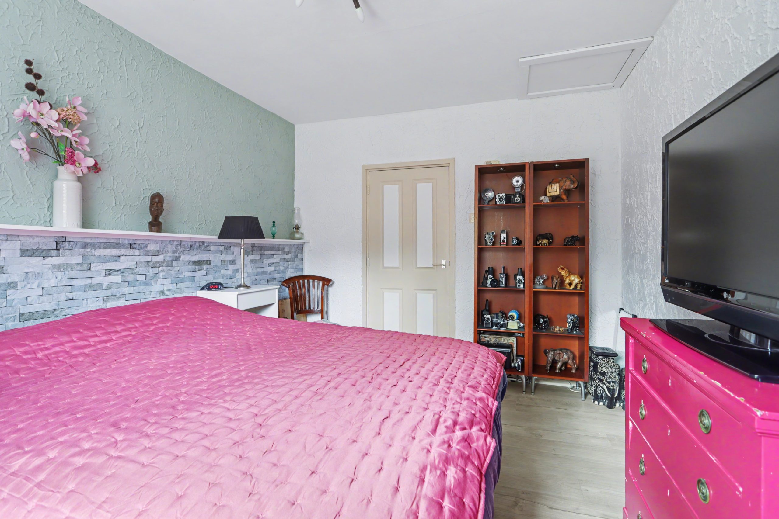De woning beschikt over drie slaapkamers, allen voorzien van laminaatvloeren, gestucte wanden en elektrische rolluiken.