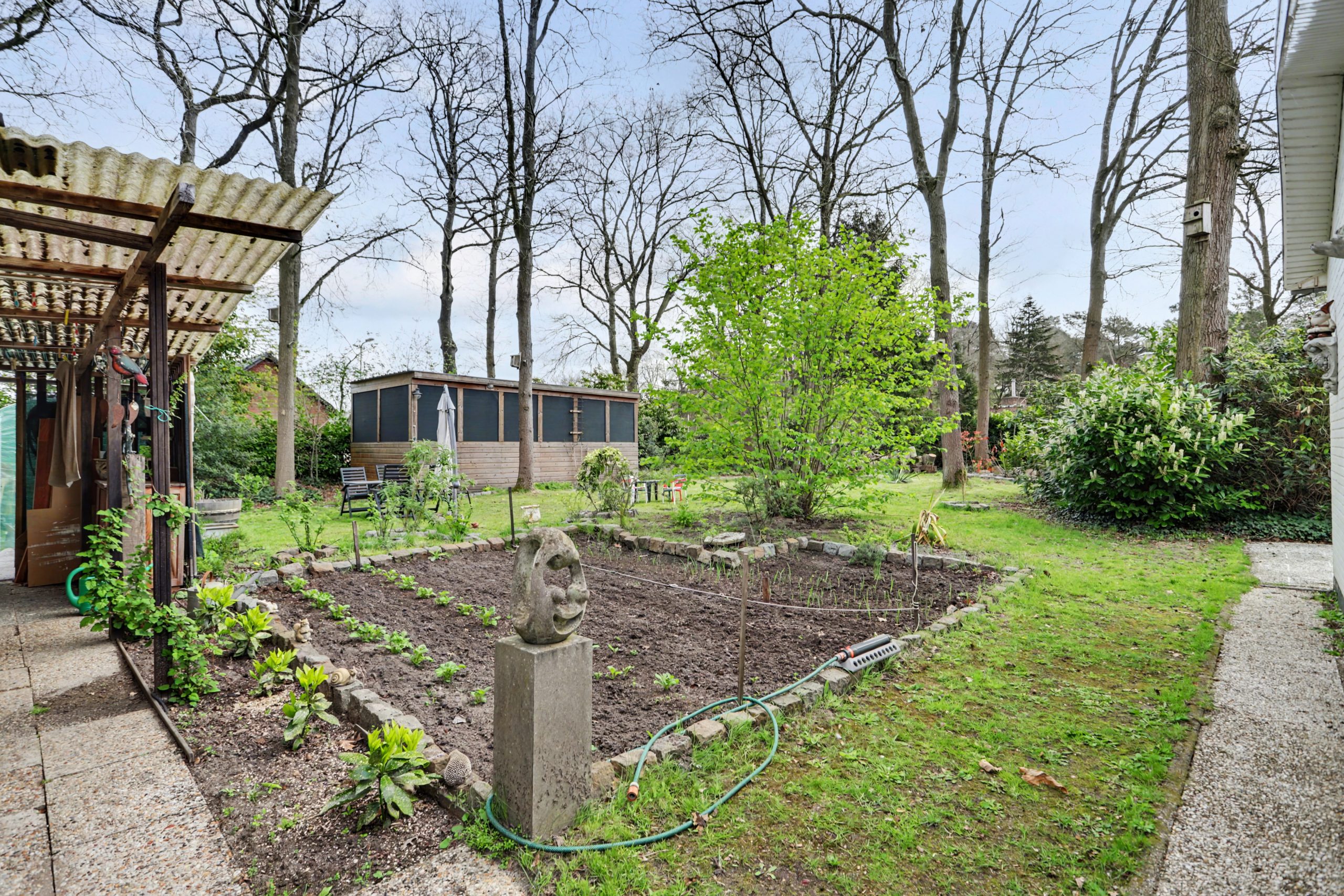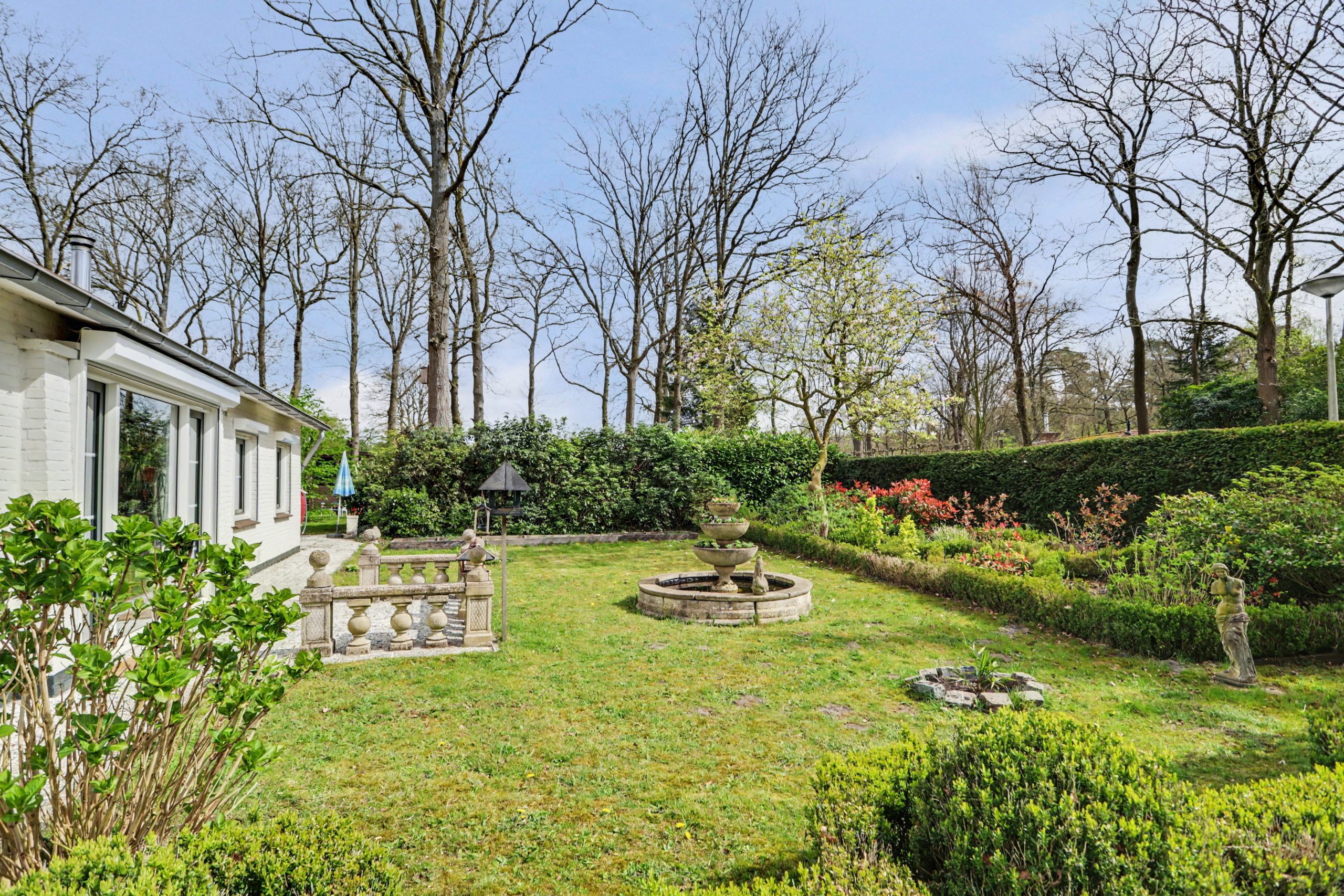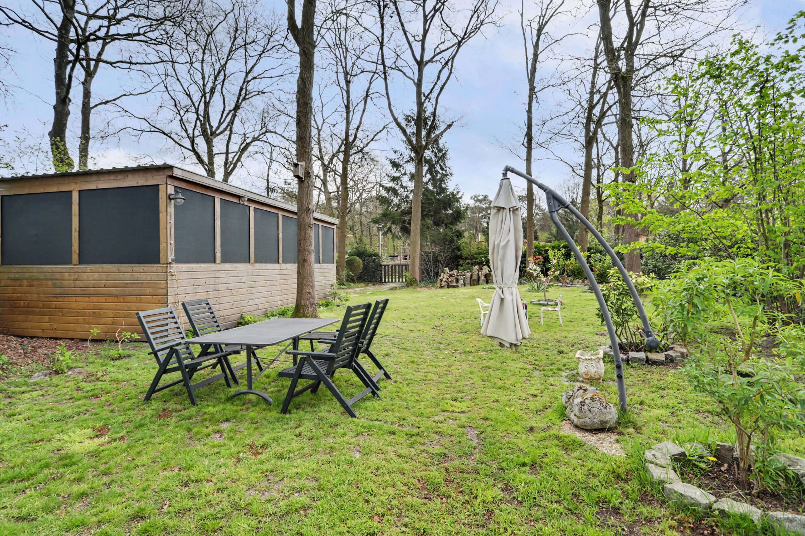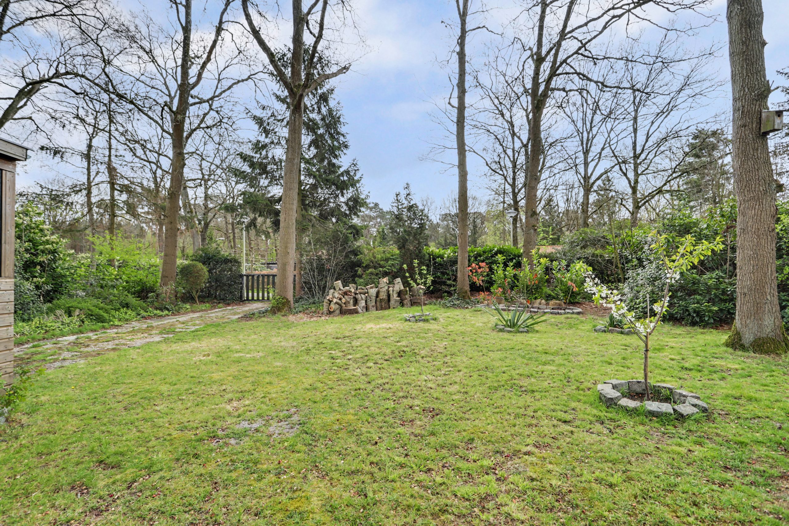 De fraai aangelegde tuin rondom de woning sluit perfect aan bij de bosrijke omgeving en biedt volop privacy.