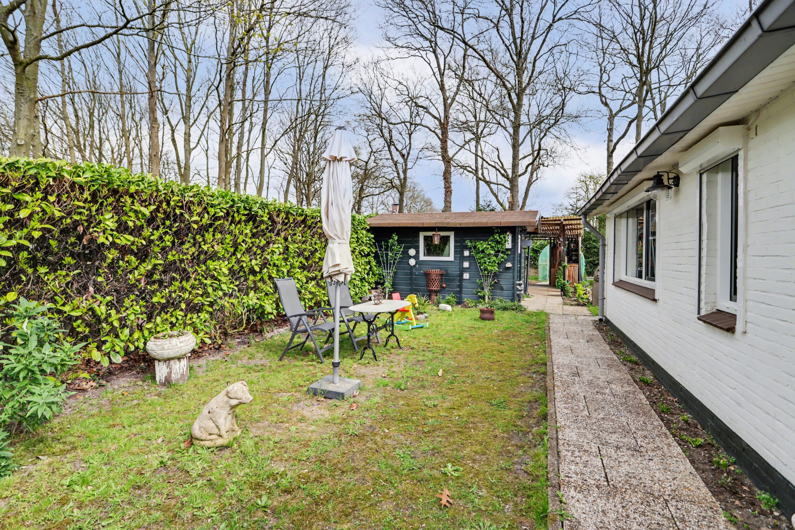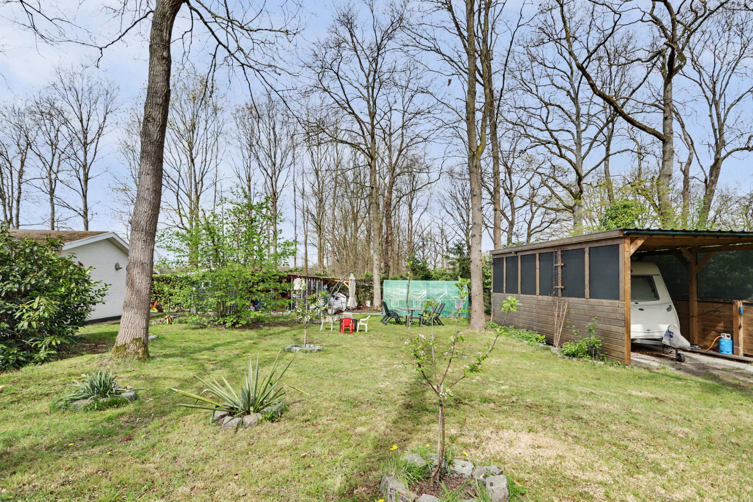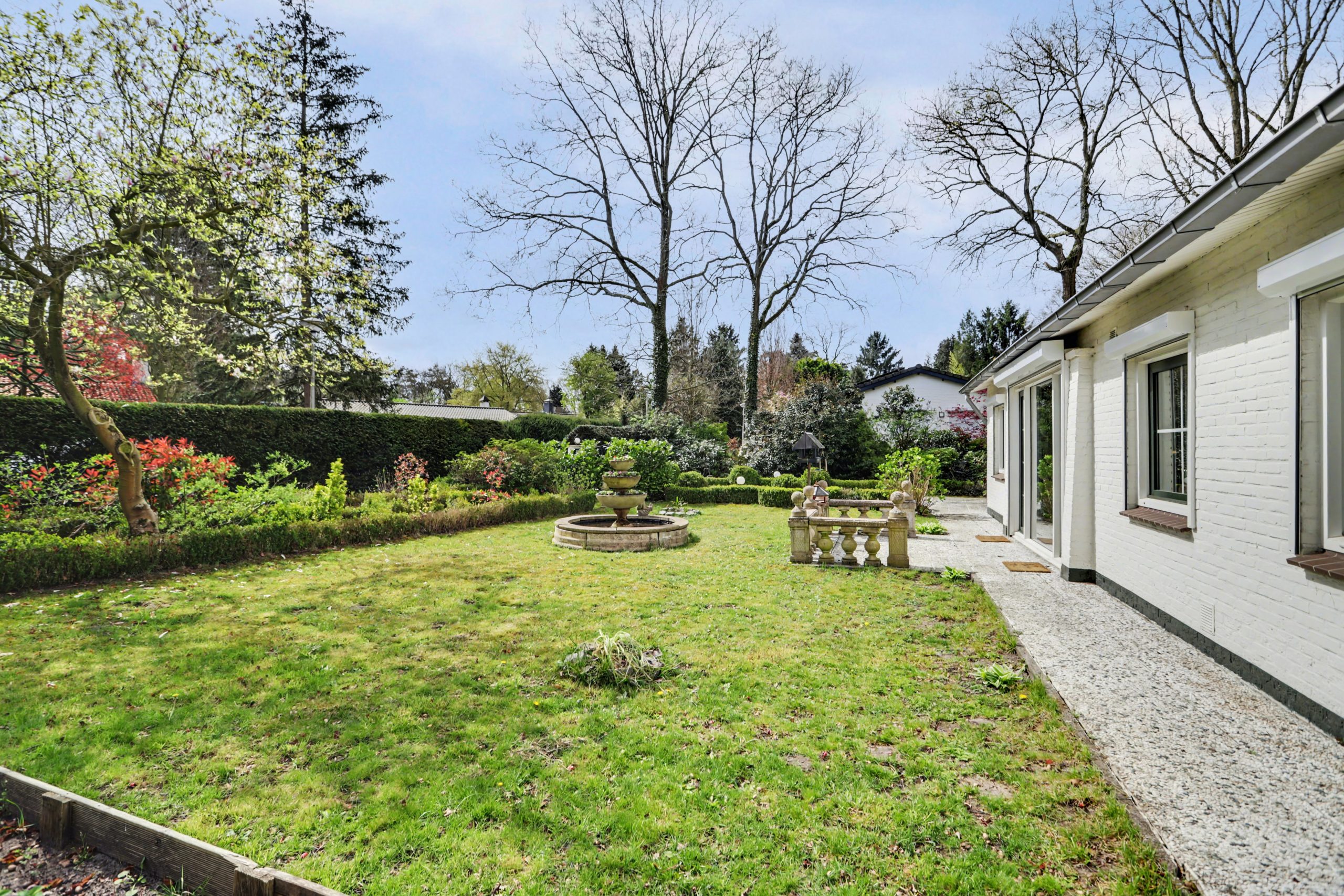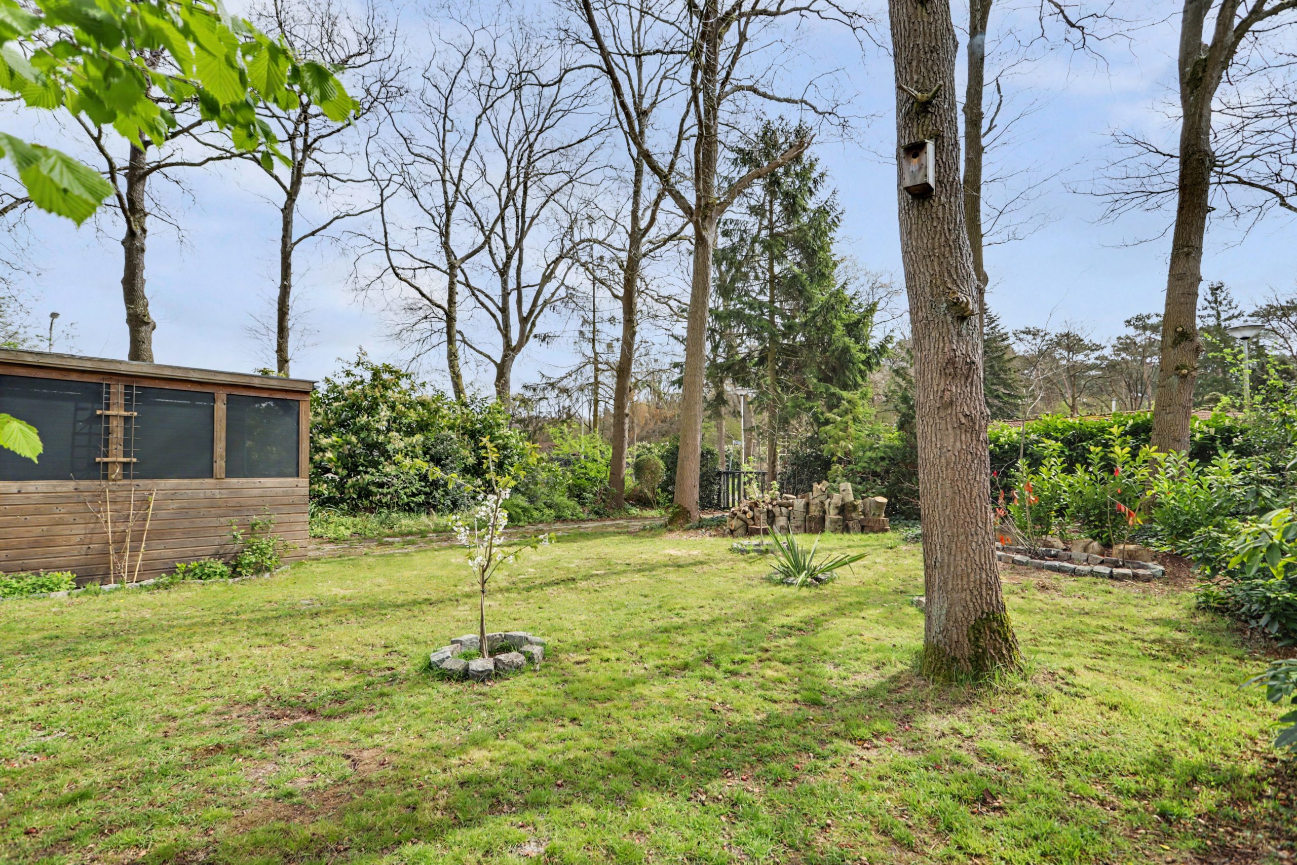 De fraai aangelegde tuin rondom de woning sluit perfect aan bij de bosrijke omgeving en biedt volop privacy.