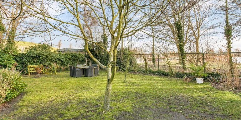 De achtertuin van de woning is gericht op het zuidwesten waardoor de gehele dag zon aanwezig is in de tuin. Van de ochtendzon op de voorgevel tot de late namiddagzon achter in de tuin. Door het blijvende vrije uitzicht een grote tuin met veel privacy. De tuin ligt aan een natuurgebied.