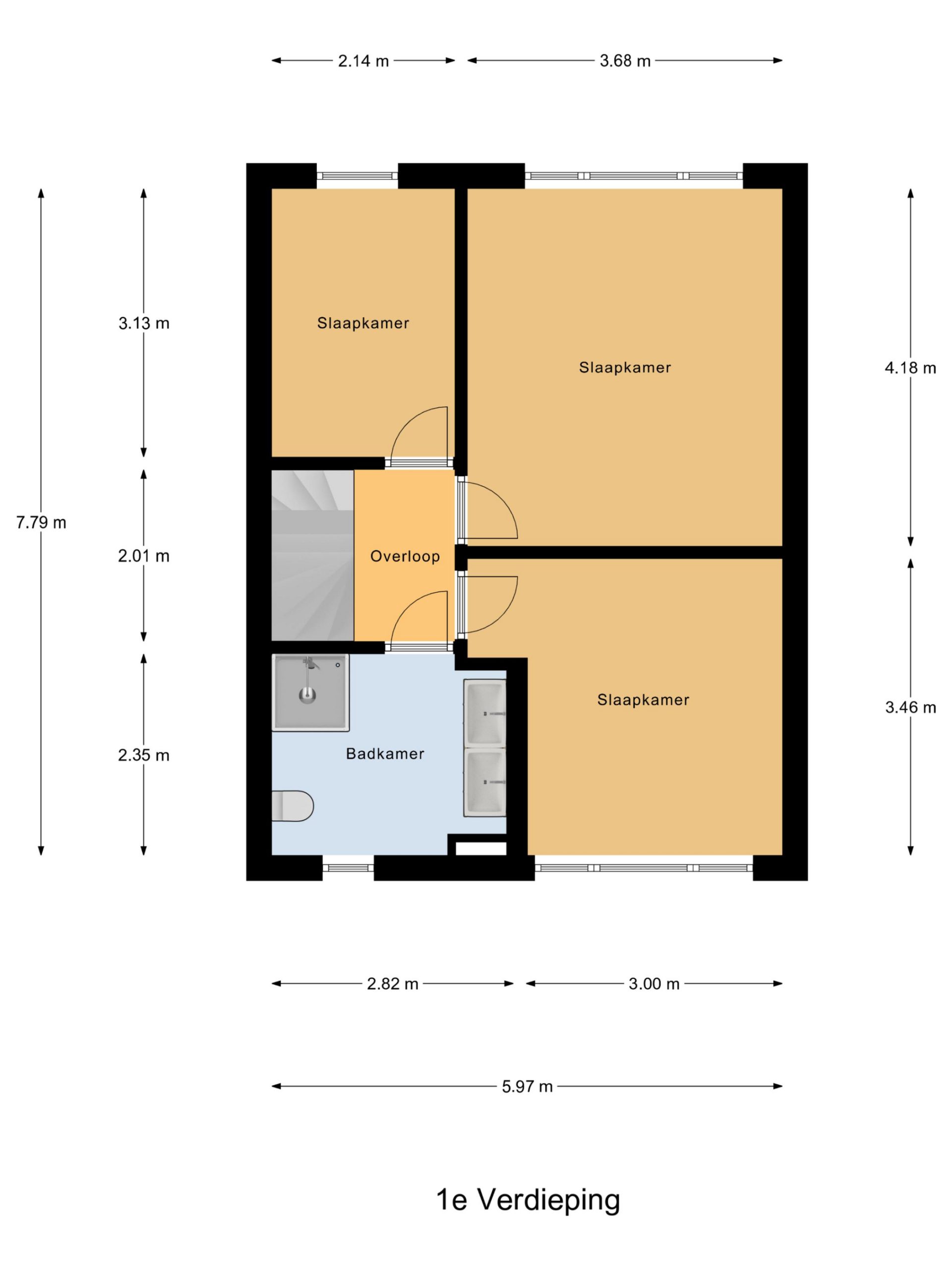 Op de eerste verdieping bevinden zich drie goed ingedeelde slaapkamers en een moderne, volledig betegelde badkamer met inloopdouche, wastafelmeubel en toilet. Ideaal voor gezinnen, thuiswerkers of het ontvangen van gasten.