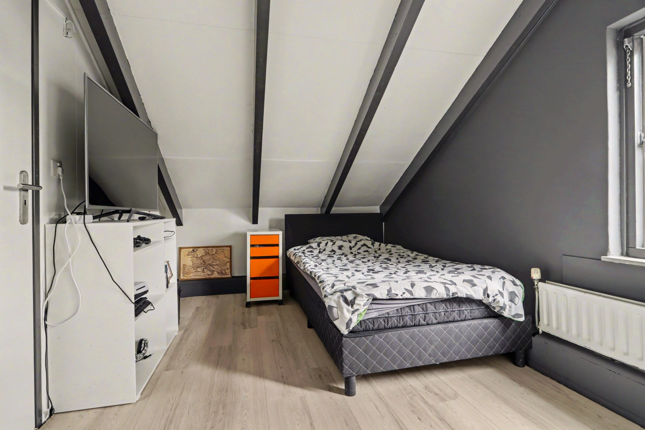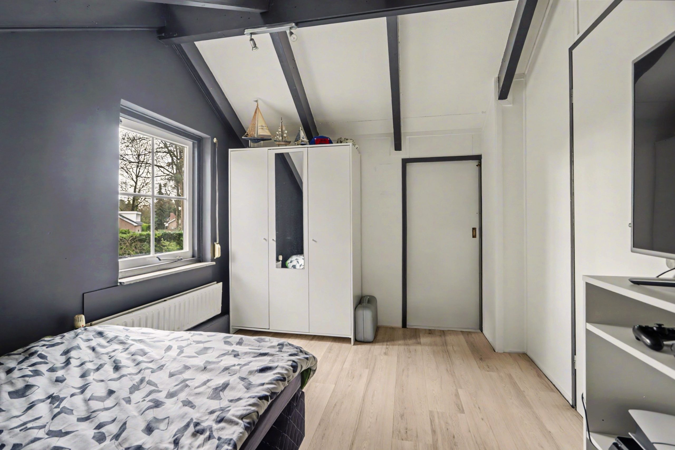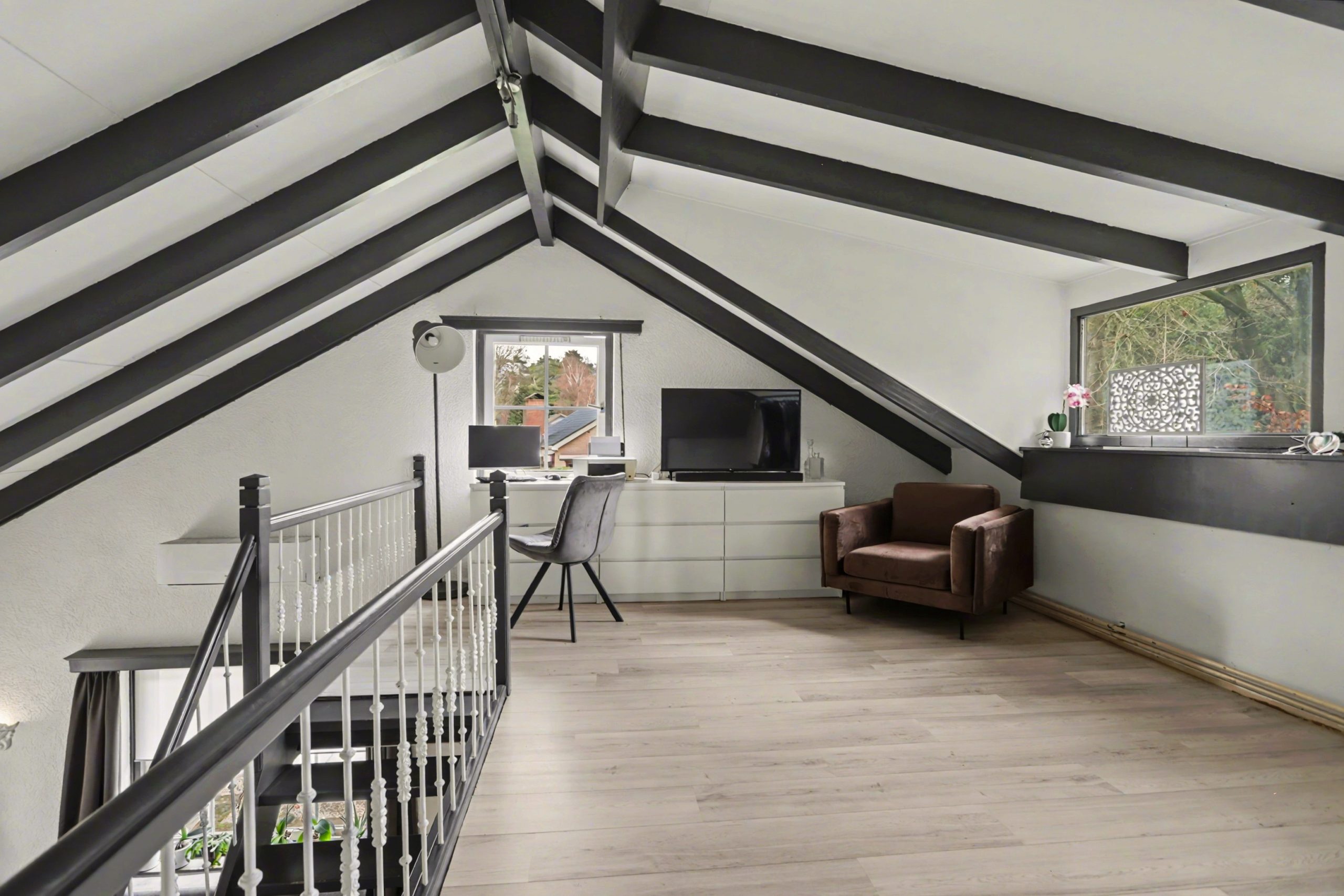 Op de verdieping bevindt zich een slaapkamer en een ruime vide met een grote dakkapel. Deze zorgt voor extra licht en een mooi zicht op de begane grond. De verdieping is afgewerkt met een laminaatvloer.
