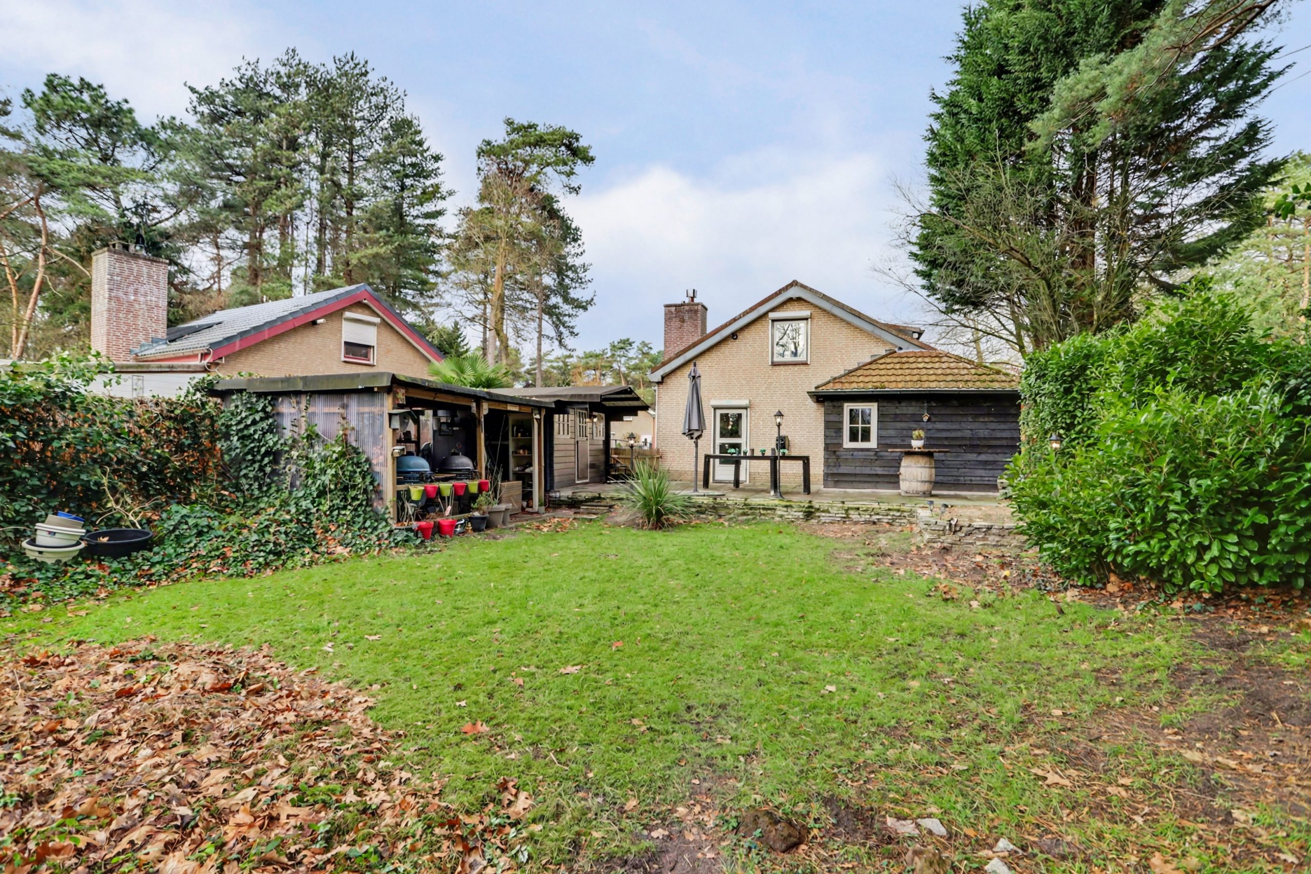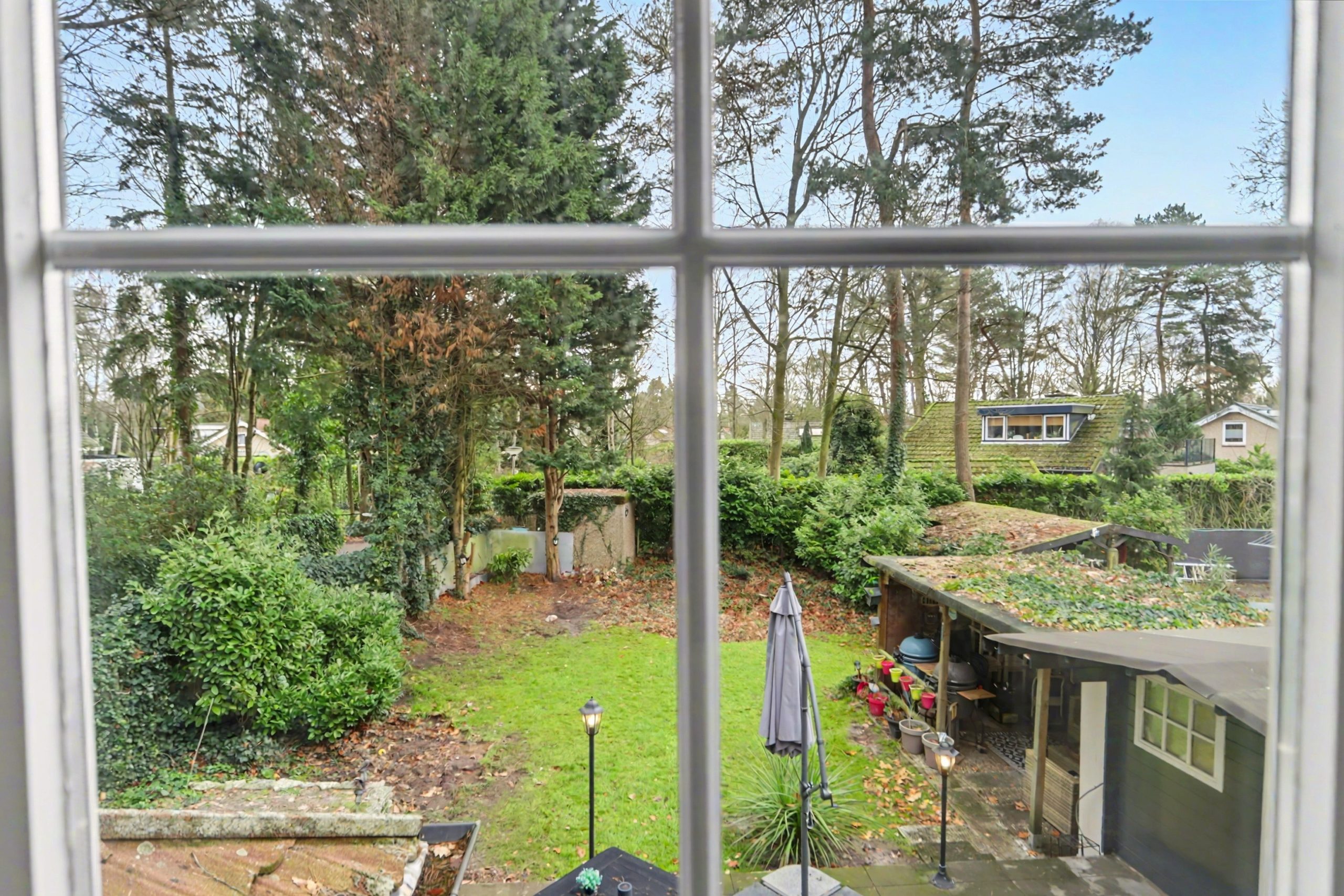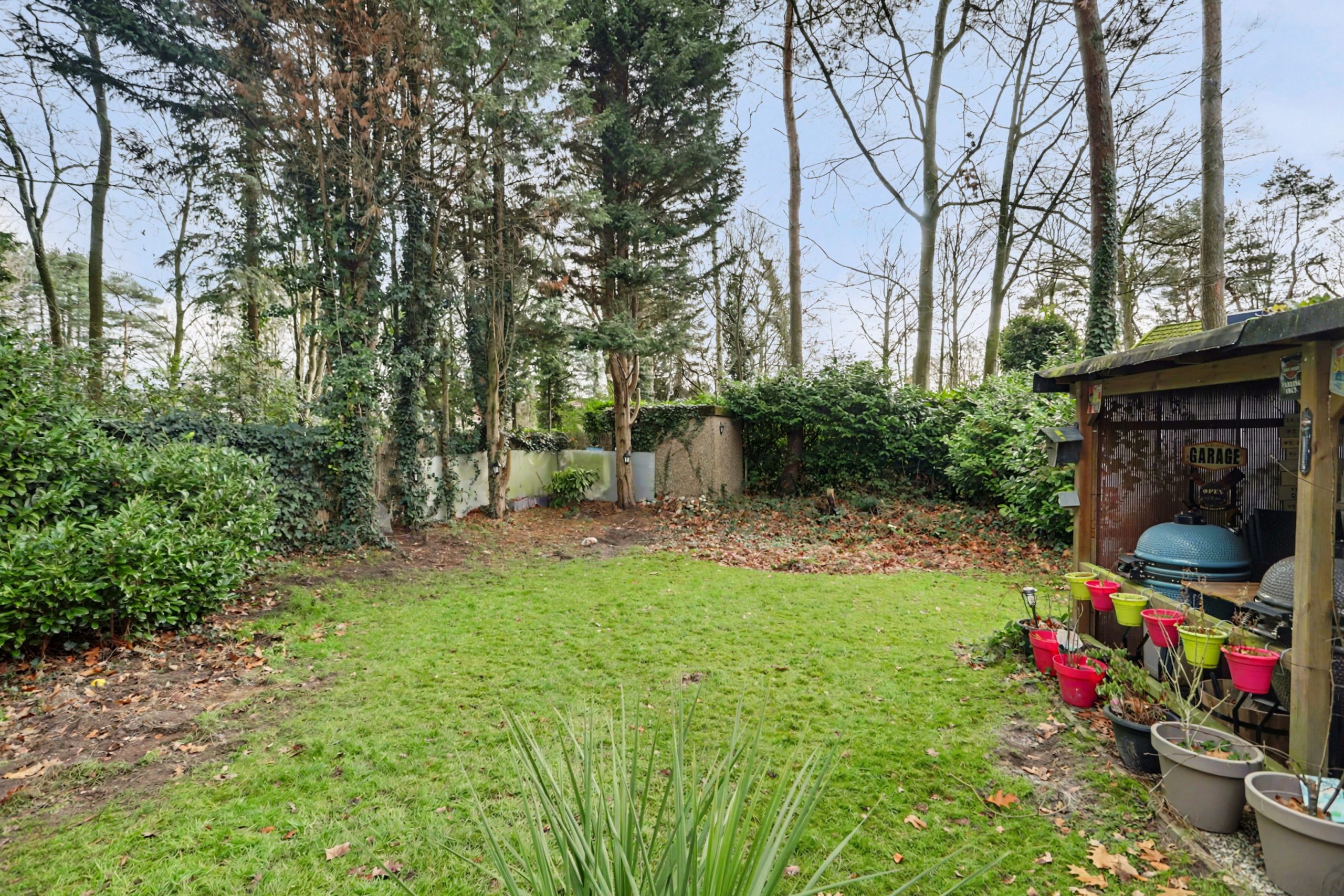 Het perceel is toegankelijk via een smeedijzeren hek aan de voorzijde met oprit. Aan de achterzijde bevindt zich een ruim terras en een vrijstaande overkapping met berging, ideaal om gezellig te barbecueën.