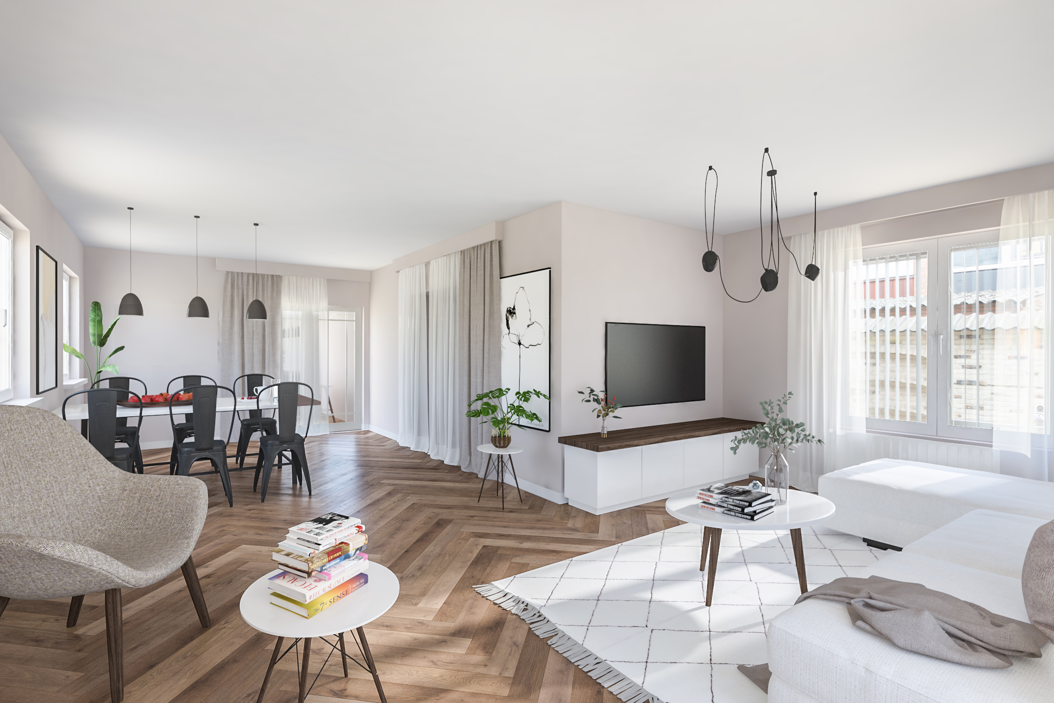 De art impressie fotografie geeft u een indruk hoe de verschillende ruimtes eruit kunnen zien als een mooie leefruimte.